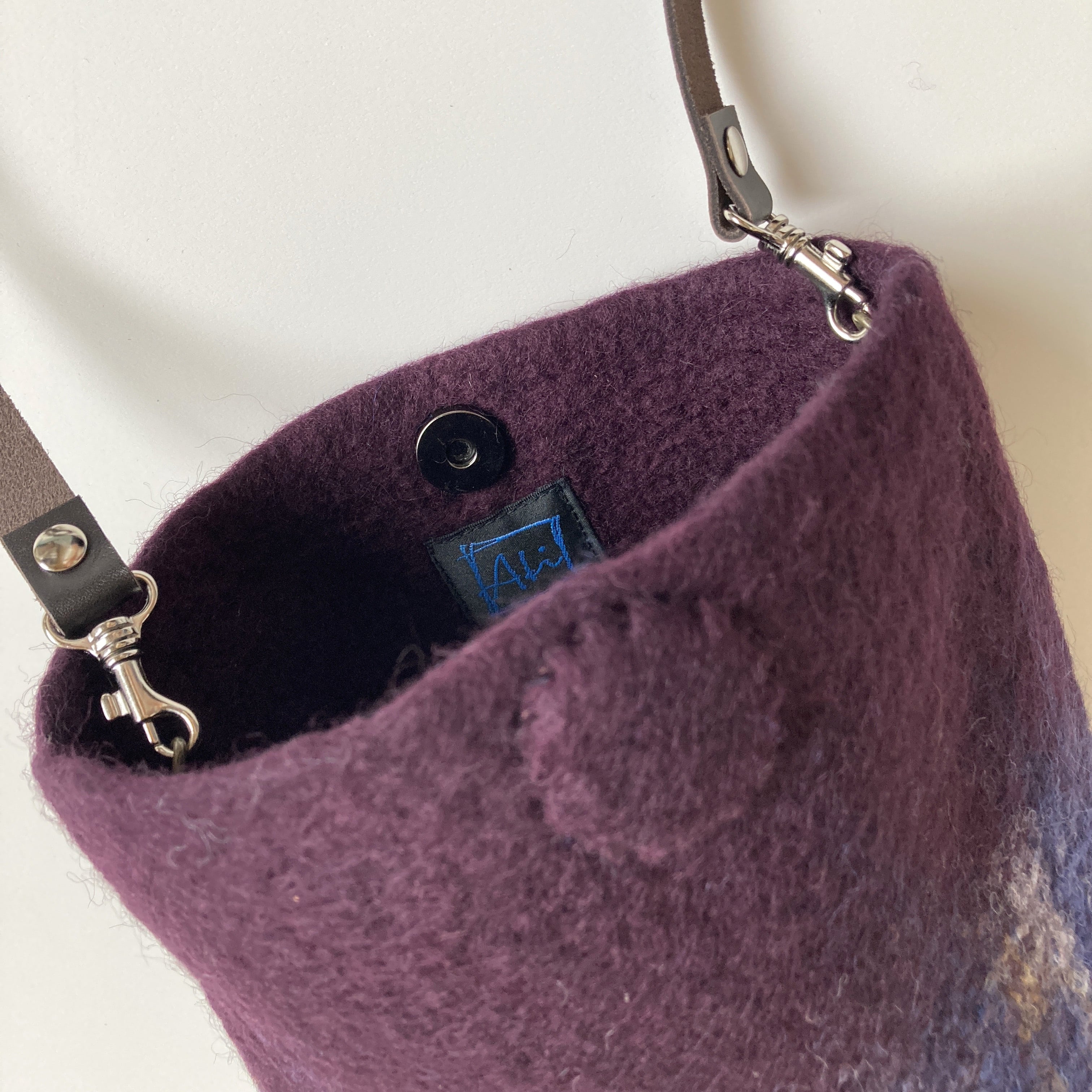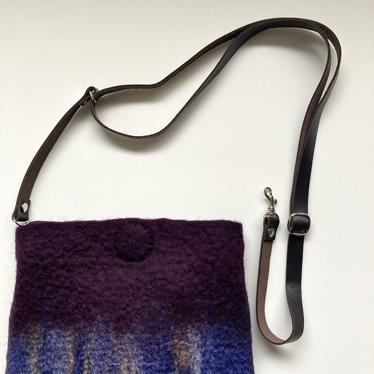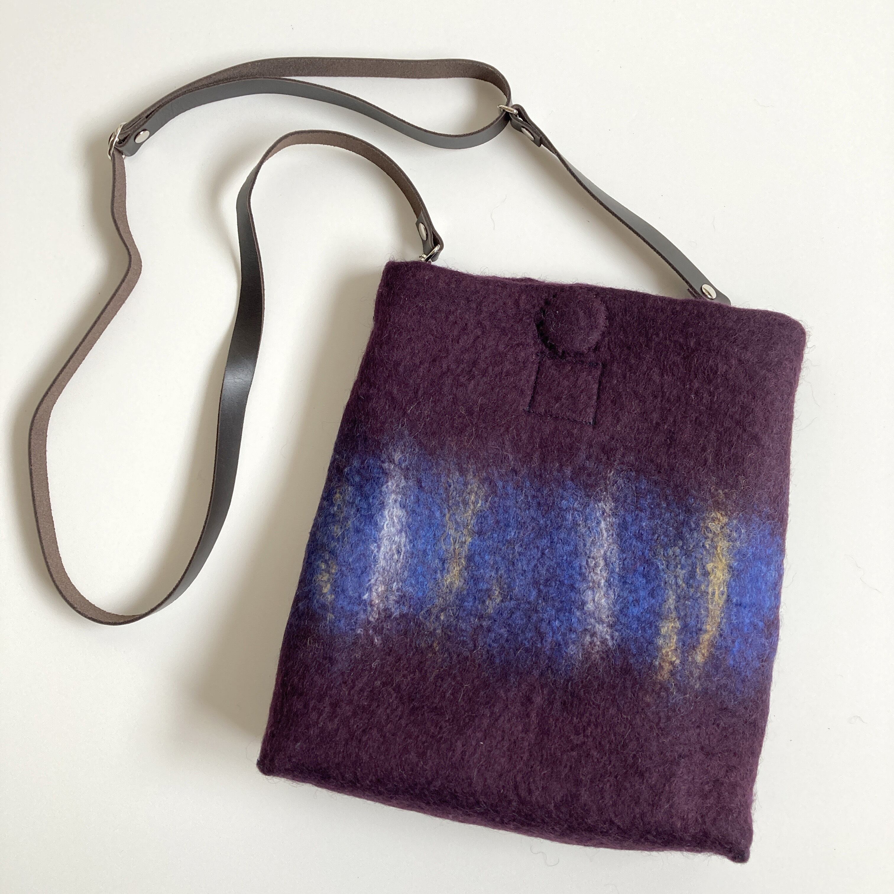 深いプラム色にグラデーション模様が入ったシンプルなショルダーバッグ。